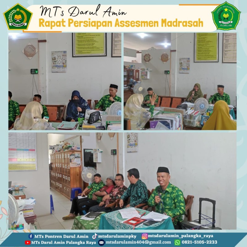 Adapun agenda rapat yang dibahas adalah pembentukan panitia Assesmen Madrasah (AM) dan persiapan AM terkait teknik pembuatan penulisan untuk AM. Asesmen Madrasah yang mulai diterapkan pada semester genap ini dilaksanakan sebagai pengganti UM bagi peserta didik kelas 9 di MTs Darul Amin.