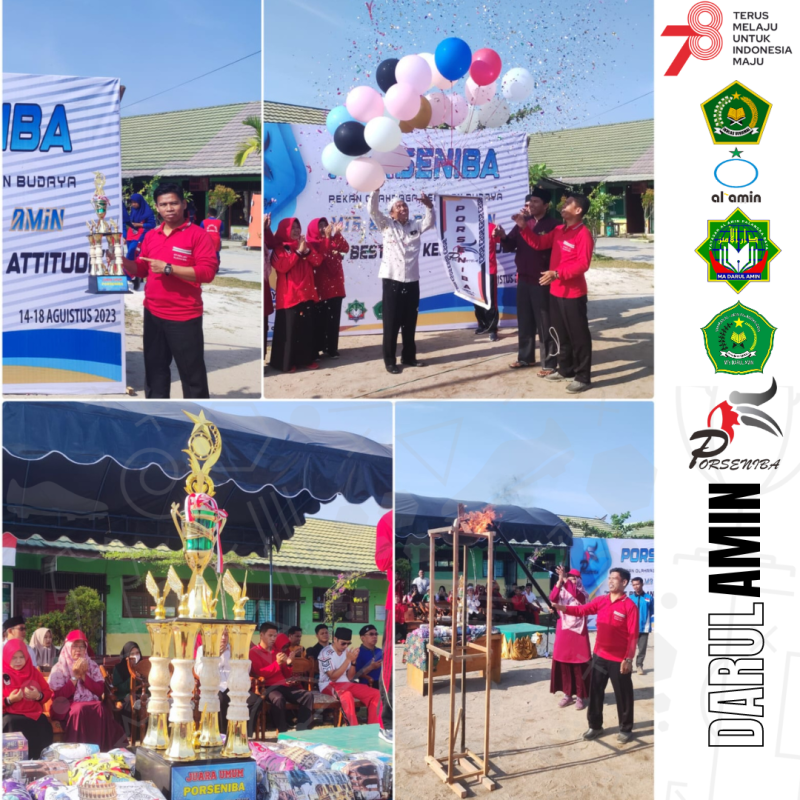 Gema nuansa Hari Ulang Tahun (HUT) Ke-78 Kemerdekaan Republik Indonesia sudah mulai terasa. Bendera merah putih dan umbul-umbul mewarnai tepi jalan. Begitu pun di kawasan pendidikan Darul Amin. Memeriahkan HUT Ke-78 Kemerdekaan RI, MTs dan MA Darul Amin menyelenggarakan perlombaan yang dikemas dengan tema Pekan Olahraga Seni dan Budaya (PORSENIBA) Darul Amin Tahun 2023.