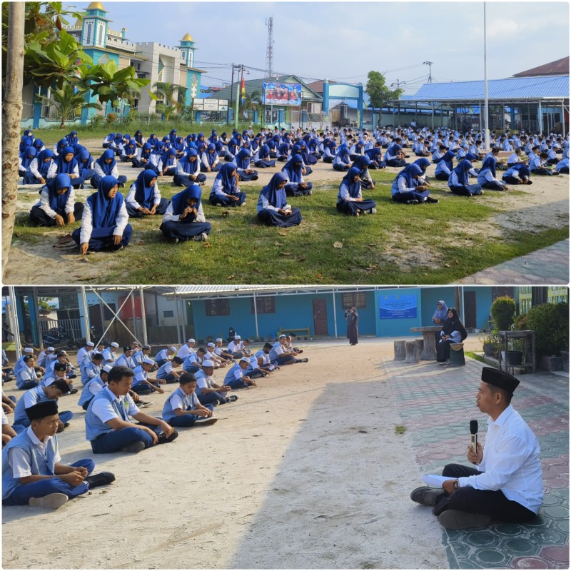 Kepala MTs Darul Amin, Muhammad Noor, memimpin kegiatan pembacaan shalawat nariyah bersama seluruh siswa dan tenaga pengajar yang ada di lingkungan Pondok Pesantren Darul Amin, khususnya MTs Darul Amin.