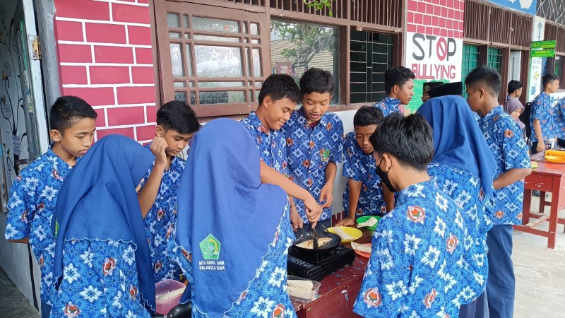 Usai menerima sosialisasi dan penjelasan tentang kewirausahaan pada pekan lalu, peserta didik MTs Darul Amin Palangka Raya kemudian melaksanakan P5-PPRA, tema kewirausahaan dengan projek usaha kekinian gen Z. Dalam kegiatan tersebut peserta didik mempraktikkan langkah-langkah memasak kebab bersama pembimbing kelompoknya masing-masing.