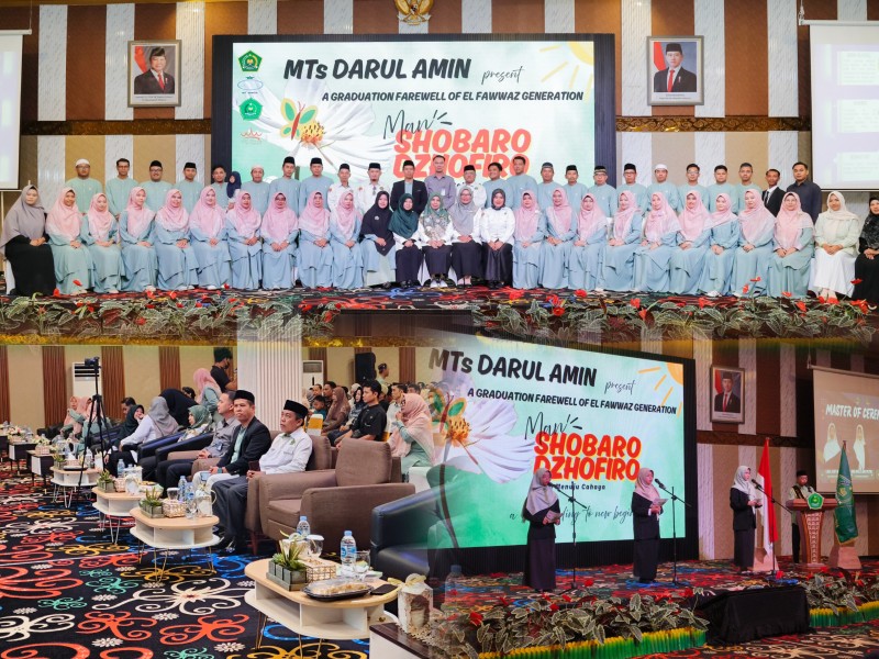 PALANGKARAYA, HUMAS - MTs Darul Amin Palangka Raya melaksanakan acara pelepasan siswa kelas 9 tahun ajaran 2024/2025, Senin (26/05/2025). Acara rutin tahunan tersebut kali ini diselenggarakan di Aula Orchid Aurilla Hotel Palangka Raya yang beralamat di Jalan Adonis Samad.