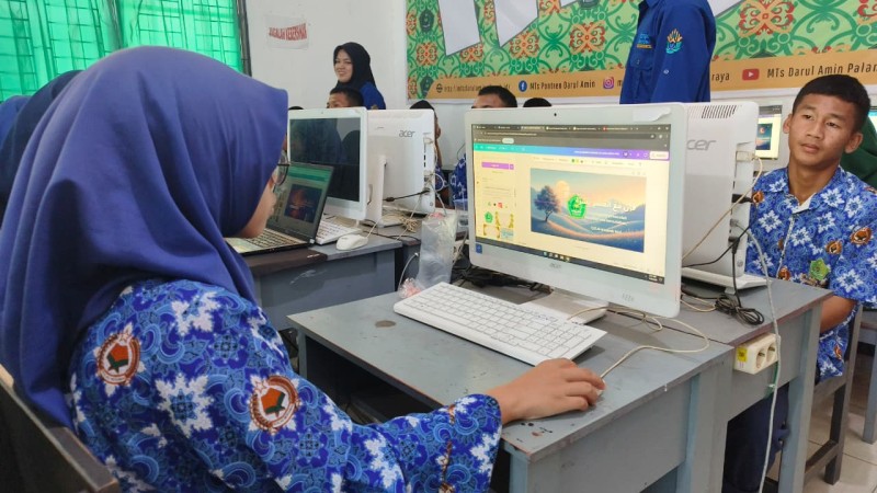PALANGKA RAYA, HUMAS — MTs Darul Amin Palangka Raya melaksanakan kegiatan Workshop Canva Dasar dengan tema 'Kreatif dan Produktif di Era Digital'. Kegiatan ini diadakan oleh mahasiswa program MBKM (Merdeka Belajar Kampus Merdeka) serta mendapatkan dukungan penuh dari pihak sekolah, Rabu (5/11/2025).